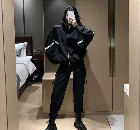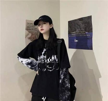 在搭配的时候,其实除了卫衣外,还可以搭配黑色的t桖,这种搭配效果,也是比较时尚比较潮的,很多女生,比较喜欢暗黑系的风格,日常就比较适合这种搭配,会给人一种特别酷帅的感觉,不论是整体的氛围上,还是说在单品的潮感上,都是会比较突出的