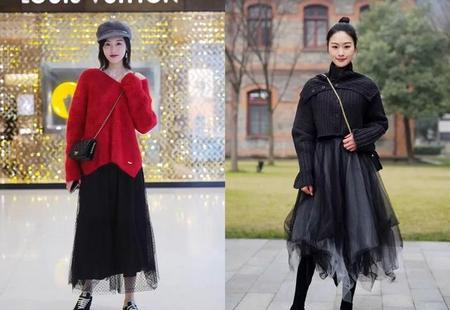 黑色纱裙近年来可是超级流行,既显身材百搭,又层层叠叠很有层次感,非常容易搭配甜美的小公主气质,以及甜酷气质。黑色纱裙的搭配那就很多了,针织衫、套头衫、卫衣、西装外套都是不错的选择,这里给大家推荐一些穿搭。