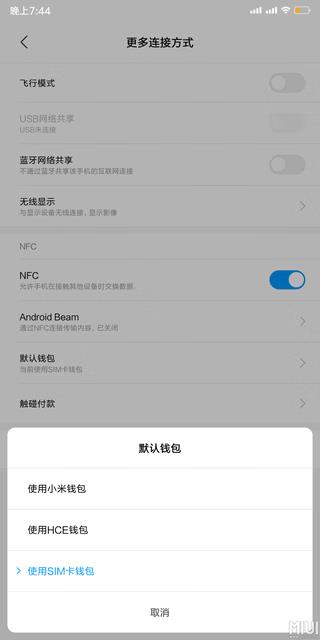 4、在nfc功能的默认钱包里选择使用sim卡钱包。