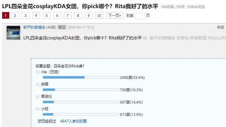 大家知道KDA女团包含四个英雄分别是阿狸、阿卡丽、卡莎和伊芙琳。LPL的四朵金花也分别Cos其中一个英雄,余霜Cos伊芙琳,小钰cos阿狸,rita则cos的是卡莎,最后周淑仪cos的是阿卡丽。