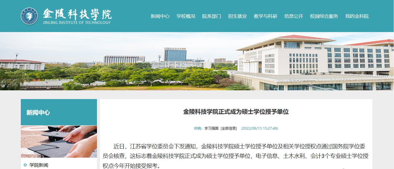 不过好在今年金陵科技学院顺利通过了硕士学位授予单位建设进展核查,标志着金陵科技学院正式成为硕士学位授予单位,并一次性拿到了电子信息、土木水利、会计等3个硕士点,学校的办学层次全面提升,由本科教育升级为本硕教育。
