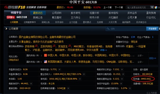 我们拿中国平安来举例(声明:只做举例分析,不做股票推荐)。打开任何的股票软件,都会有股票的详细信息。