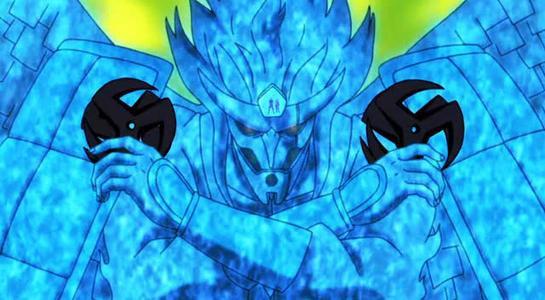 淡蓝色完全体须佐能乎须佐能乎的真正形态,需要将自身瞳力锻炼到极致,并且拥有极大的查克拉量才能使用。其大小超越山峰,呈现出武神的姿态,其战斗力足以和“尾兽”匹敌。背部的铠甲上变化出的翅膀并配备有双剑,能够翱翔于天际。完全体须佐能乎能够使使用施术者擅长的忍术,其长剑可以轻松劈开山脉、陨石。