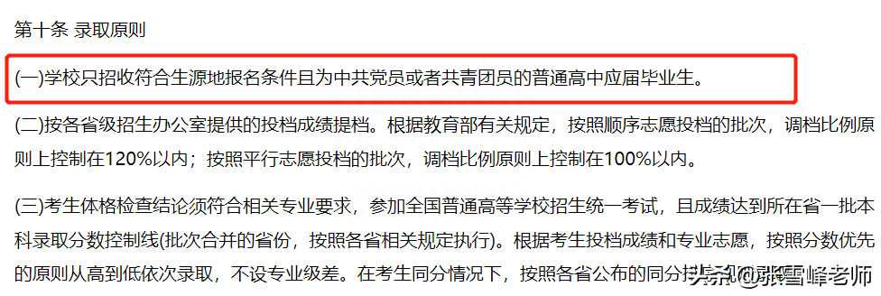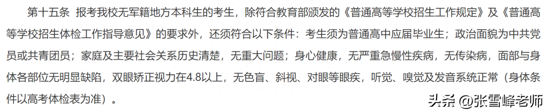 在招生简章中,只有生长军官允许往届毕业生报考,无军籍本科地方生招生只收应届毕业生,且要党员或团员。