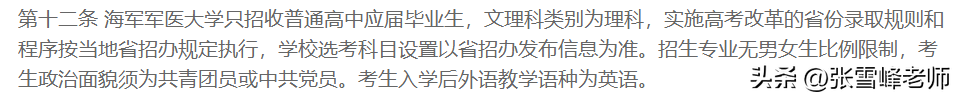 海军军医大学对外可称第二军医大学,学校是一所培养卫生事业专门人才的全国重点医科大学,学校现为国家“双一流”建设院校,国家“211工程”重点建设院校,全国首批开办八年制医学教育的院校之一。一级国家重点学科数位列全国医科院校第一。无军籍本科地方招生只收应届毕业生。