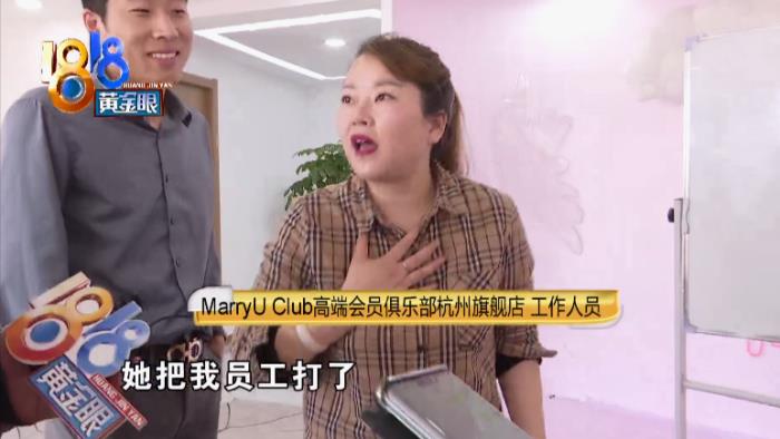 MarryU Club高端会员俱乐部杭州旗舰店 工作人员:“是我们周主任来负责,帮他们调解一下,结果进去没有三分钟,她们就闹起来了,她把我员工打了,打得还很严重,满脸都是伤,现在班都上不了。”