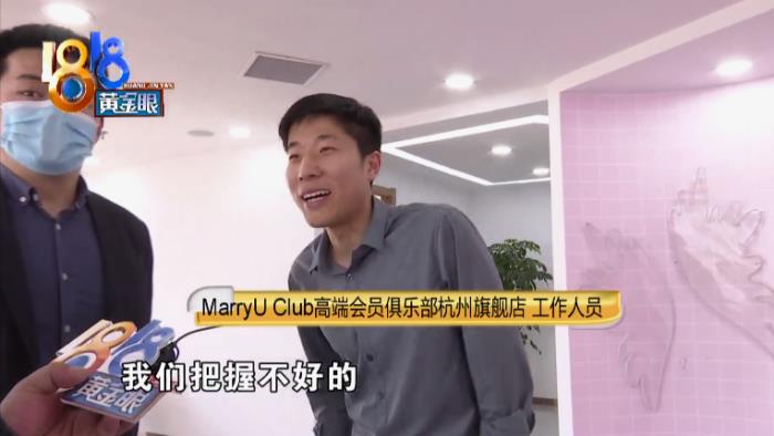 MarryU Club高端会员俱乐部杭州旗舰店 工作人员:“这个的话如果感情速度进展比较快,也有可能变成这个程度(记者:那也太快了吧,第一天就要确定)那你这个两人的感情,我们把握不好的(邹女士:你们是高端婚恋啊 )高端婚恋怎么了,高端婚恋的意思就是,你们两人交往的话,就必须要等到一年半载后,才能确定关系吗。”