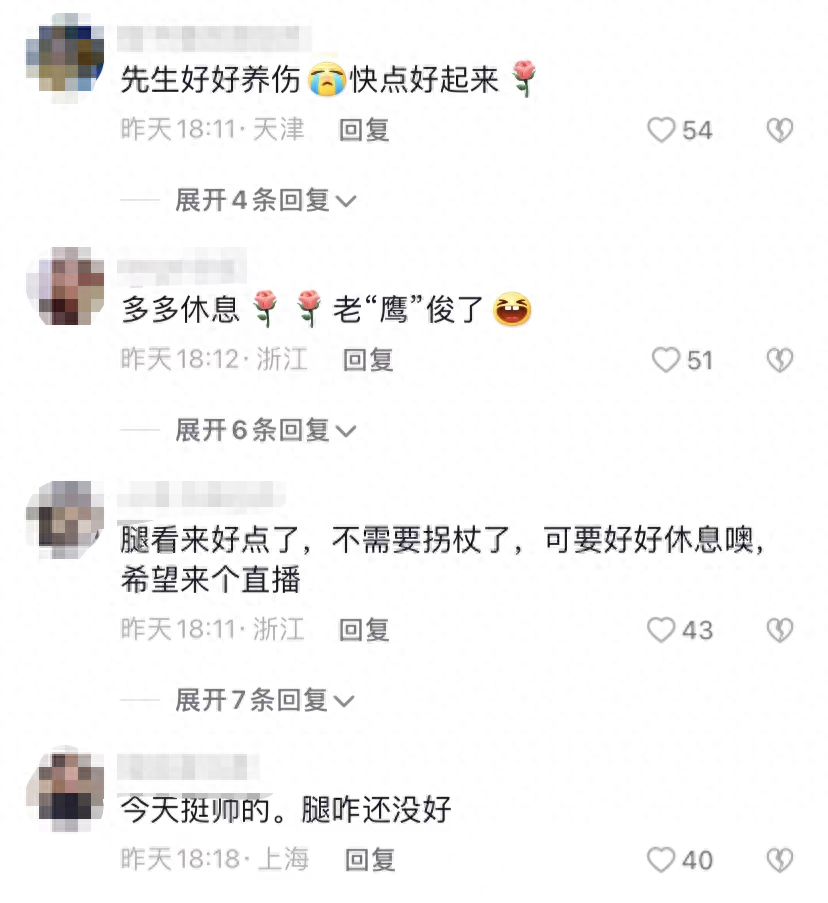 画面曝光后引发热议,无数网友都在劝告李玉刚多休息,还有网友认为他的腿伤比起之前来说好了一些。