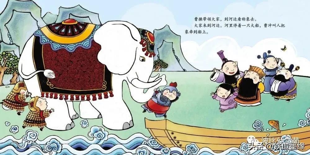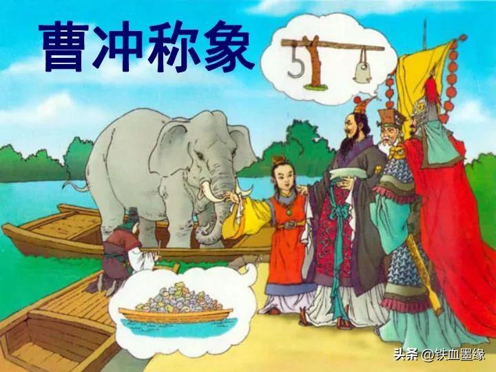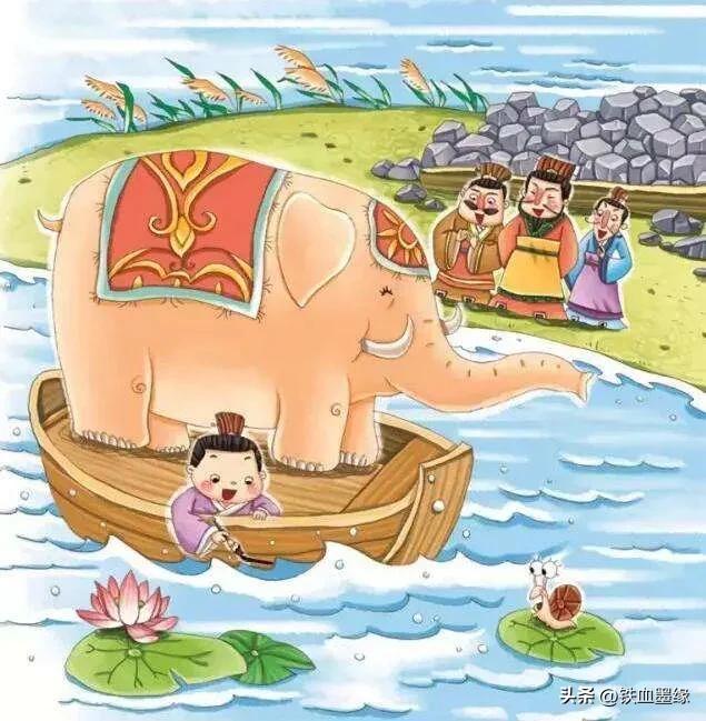 曹操和他的大臣们一看,说话的原来是曹操的小儿子曹冲,当时只有六七岁。