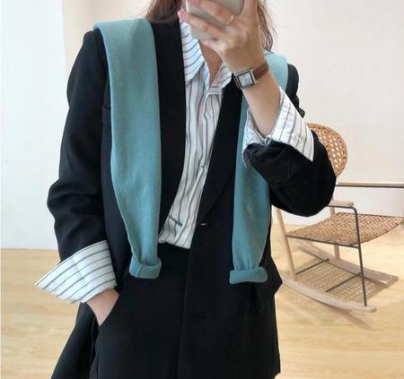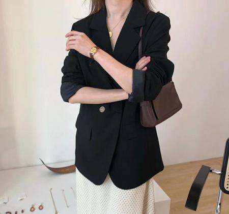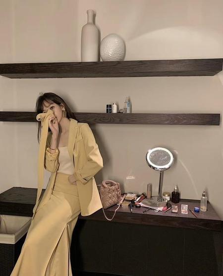 2,套装小西装配搭就相对单一,但是体现干练,优雅,气质的感觉。两个类别完全不一样,看个人喜好而定。图如下: