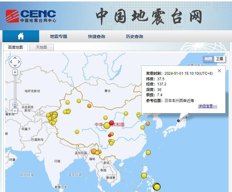 现代快报讯(记者 是钟寅)2024 年 1 月 1 日,中国地震台网消息,当日 15 时 10 分在日本本州西岸近海(北纬 37.50 度,东经 137.20 度)发生 7.4 级地震,震源深度 30 千米。就在之前不足 24 小时,中国甘肃白银市发生地震、印度尼西亚两处火山喷发,这些地质活动存在关联吗?