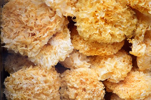 银耳是由10余片薄而多皱褶的扁平形瓣片组成,银耳子实体纯白至乳白色,一般呈菊花状或鸡冠状,直径5至10厘米,柔软洁白,半透明,富有弹性,由数片至组成,形似菊花形、牡丹形或绣球形,直径3至15厘米。