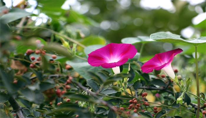 牵牛花的花语是坚持,寓意永不放弃的爱。它的生命力非常的顽强,看似非常的柔软却有着不屈不挠的精神。牵牛花的花语还有着暂时的恋爱,缥缈虚幻的爱情的花语含义。牵牛花象征寓意着一种勇气,象征着顽强,不屈不挠的精神。