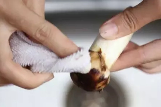 想要将松茸菌清洗干净,需要先削去菌子上的泥土和杂草,刮下外皮,快速拿到水龙头下冲洗干净。在冲洗时,还需要对松茸的头部和尾部,泥沙比较多的地方进行清理。最后用干净的抹布,将洗好的松茸表面的水渍擦干净即可。