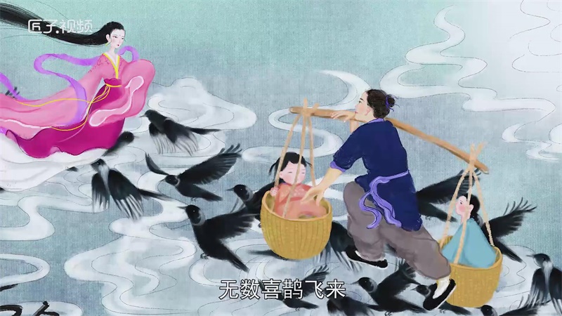 他们坚贞的爱情感动了喜鹊,无数喜鹊飞来,用身体搭成一道跨越天河的彩桥,让牛郎织女在天河上相会。