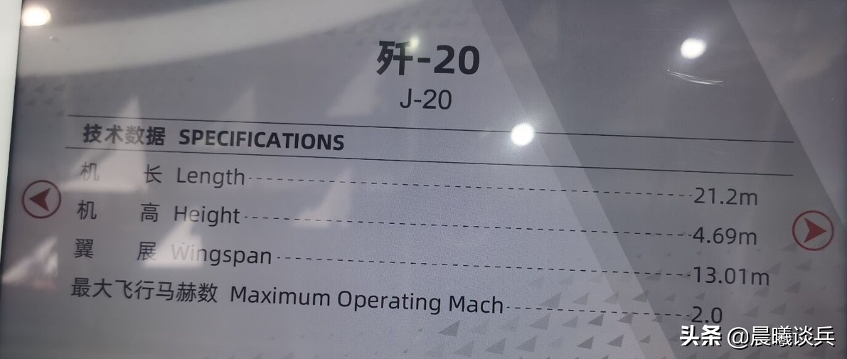 本届珠海航展,中航公布了歼20的官方数据。数据显示,歼20机长21.2米,比以前大家认为的20.3米要长一些;翼展13.01米,接近以前大家认为的12.88-13米。可在最大速度方面,展板上赫然写的是只有2.0马赫!