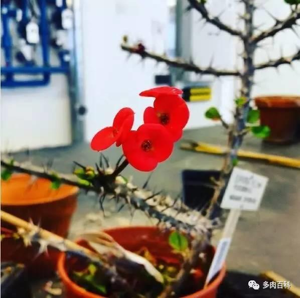 虎刺梅,别称铁海棠,它还有个高贵冷艳的昵称:基督刺。它和大戟科大部分植物一样,肉茎内的汁液有毒,不可接触食用。
