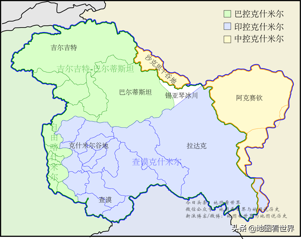 克什米尔分治现状图