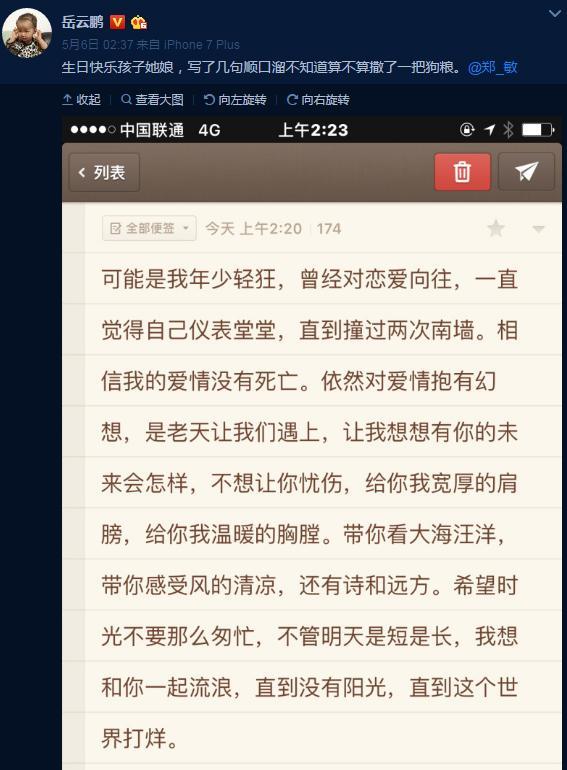 岳云鹏分享两人认识的全过程,写道:“那一年在村东头,媒婆说有一个姑娘在路边等你,你骑自行车过去好好看看个头模样,觉得可以我就去跟对方父母说,我说万一对方不同意咋办,我这模样我心里没底,媒婆说你这长相确实困难,架不住我这张嘴能说啊。去吧,一会别驼背,显得个高。我骑车路过你的身边,你抬头看了看我。就这样我俩在一起六年了,爱你如初,亲爱的,生日快乐。”