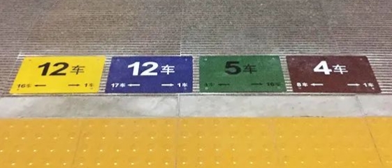 可以根据地标的颜色,去找自己对应的不同的列车编组及不同方向的列车!