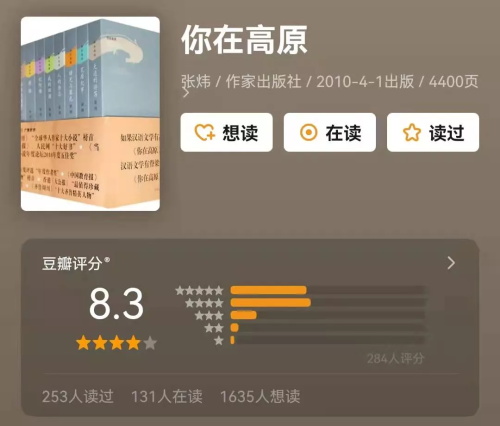 《你在高原》全书分三十九卷,归为十个单元,共450万字,是历届茅盾文学奖中篇幅最长的作品。