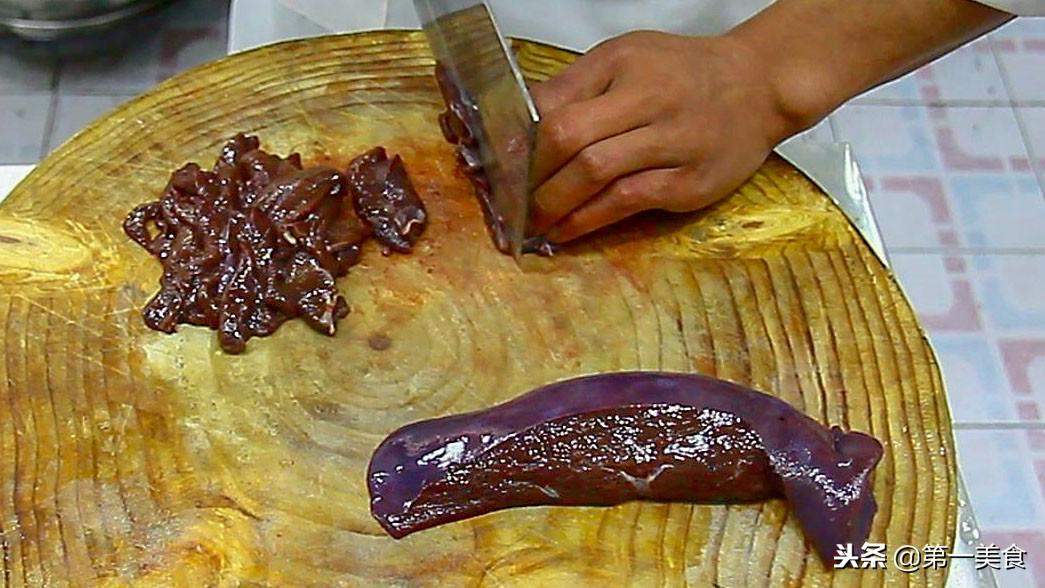新鲜的猪肝一个,很多朋友买不好猪肝,在这里给大家普及一下,好的猪肝,颜色鲜,软且嫩,手指稍用力,即可插入切开。