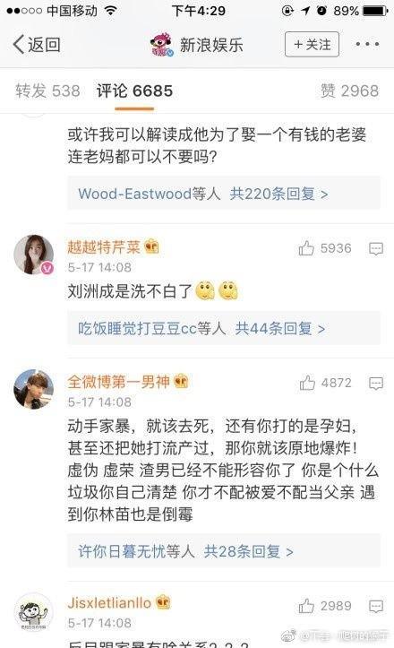 随后,刘洲成姐姐称刘洲成老婆MiuViki爆料刘洲成家暴是流言,而反咬MiuViki因为私生活太乱导致习惯性流产,然后,这样的洗白嫌弃并没有什么用,因为有网友发现,正在大家都在纷纷讨论刘洲成家暴时,我们的当事人刘洲成还在为球赛点赞,显然不在乎的样子。所以网友们还是一边倒,认为刘洲成家暴就是渣男。