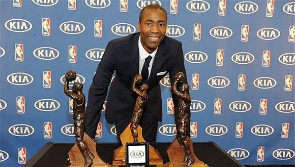 贾马尔·克劳福德现在在NBA已经18个赛季了,也是一名老将了,他是NBA史上打3+1次数最多的球员,也是NBA史上常规赛输球场数最多的球员。不过最为人津津乐道的就是,克劳福德是NBA史上唯一一个三次获得最佳第六人称号的球员,分别是09-10、13-14、15-16赛季。