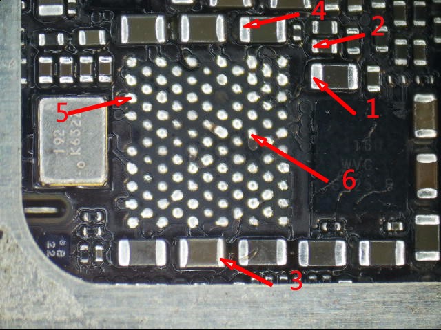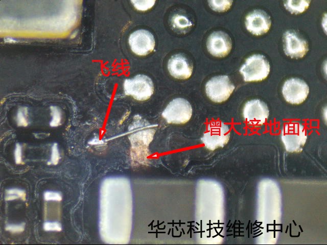 我们采取两种方式飞线和增大接地面积加固基带电源98脚。装回基带电源,锡浆把飞线·增大面积和98脚融为一体,杜绝后患。