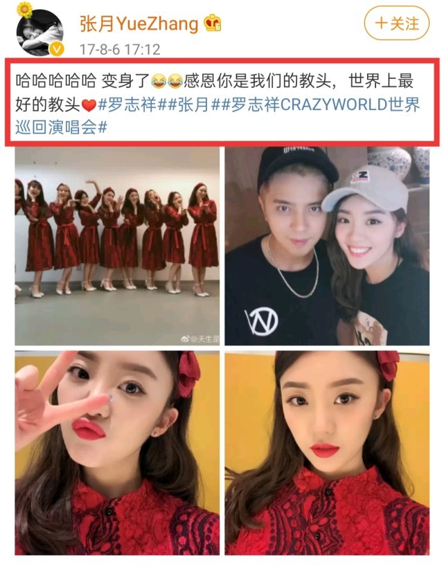 从《天生是优我》以女团身份出道后,张月慢慢接触了演戏的圈子。2017年8月,张月曾随团体作为嘉宾,参加罗志祥“CRAZYWORLD疯狂世界”演唱会上海站的演出。当时张月还cos了罗志祥的朱碧石,演唱结束后,特别发文感谢了罗志祥:感恩你是我们的教头,世界上最好的教头。