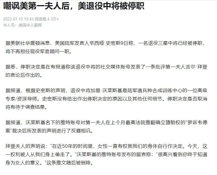 最近在网络中看到一个报道,一名男子因为回复了第一夫人的话语,这句话没有不礼貌的词汇,却被革职了!而此事并没有给出任何合理的解释,就只是报道因给第一夫人留言后被革职!所有人都认为美西方的“言论自由”是可以随意的发表自己的观念和想法,是不分场合、不管对方是谁、不顾什么情况,只顾表达自己的意思和想法。却忽略了一个最重要的部分,美西方的“言论自由”是相对的,是需要符合当局领导者的己意,那你的言论才是“自由”的!否则连说话的权利都是没有的!