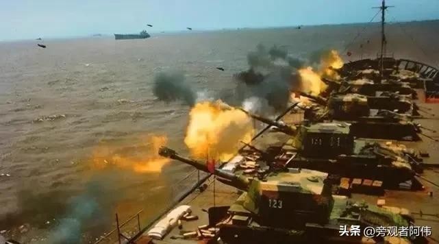 没有几艘像样的军舰,最大的吨位才两千吨。为了增强火力,增加舰上的打击能力,陆军无奈把坦克和大炮搬到了军舰上,练习射击。据说当时台湾获得了美国大量先进武器的支持,连它们老化的驱逐舰,经过返修都比我们的强。当时的军力不要说和台湾比,就是连日本自卫队都比不了,为了弥补军舰的不足,征集了两千多艘民用船只。