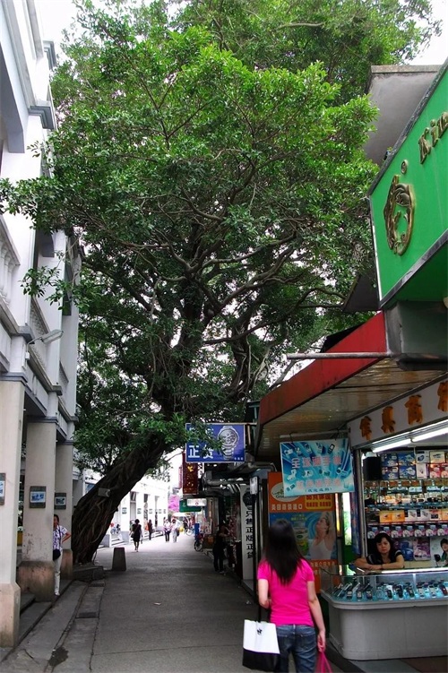 这棵古榕树已有百多年历史。树根长在深圳一方,叶枝覆盖香港一方。有「根在祖国,叶覆香港」的意境。