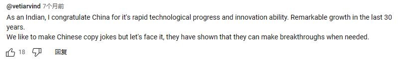 vetiarvind:作为印度人,我对中国快速的技术进步和创新能力表示祝贺。过去30年增长得真快。