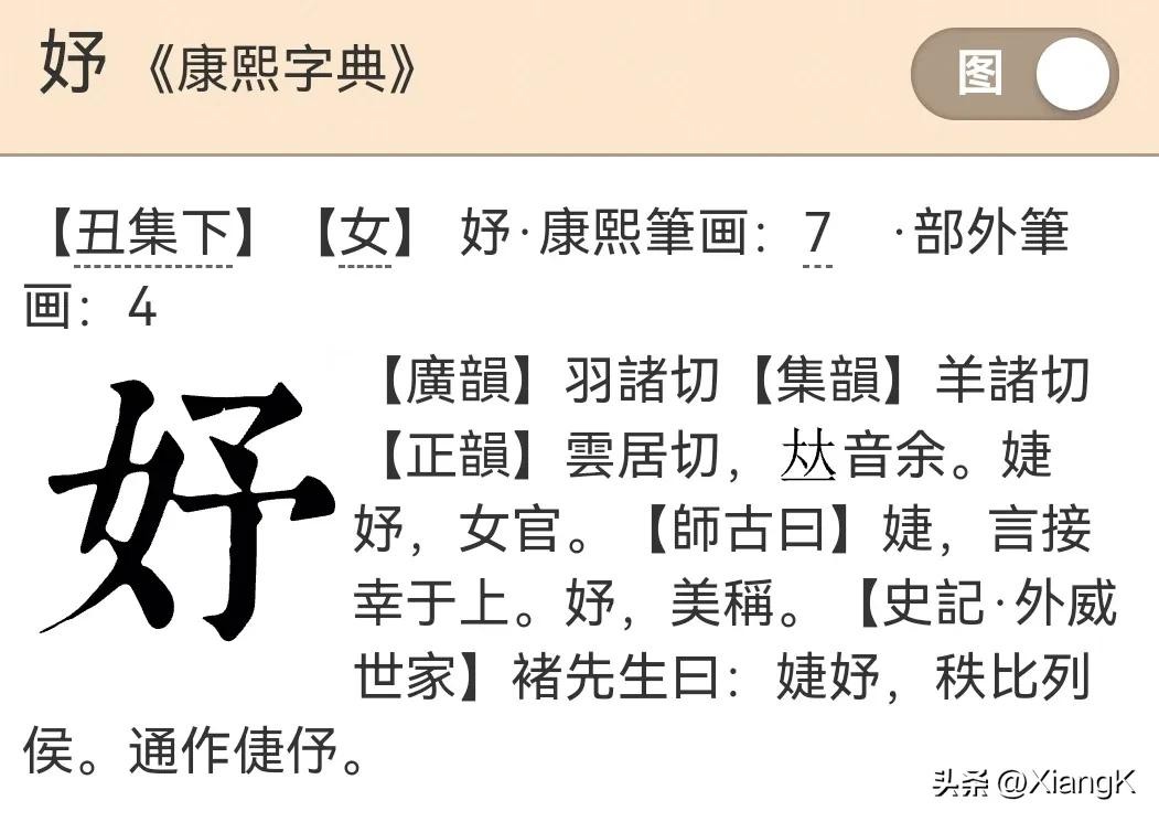 三、“妤”字《康熙字典》解释: