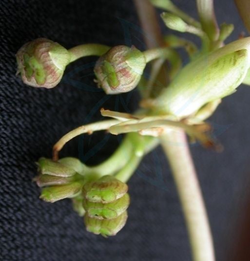 果实两侧扁压,圆球形,表面有纵棱;4-10月开花结果。