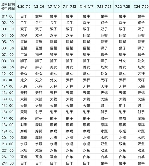 如你的出生时间是7月13上午十一点出生,则上升为天秤座。