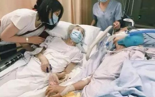 深圳70多岁的彭女士小脑出血,经抢救刚恢复意识,就请求见陷入昏迷的老伴最后一面,彭女士牵着老伴的手,轻轻地喊道:“老头子,老头子……”。