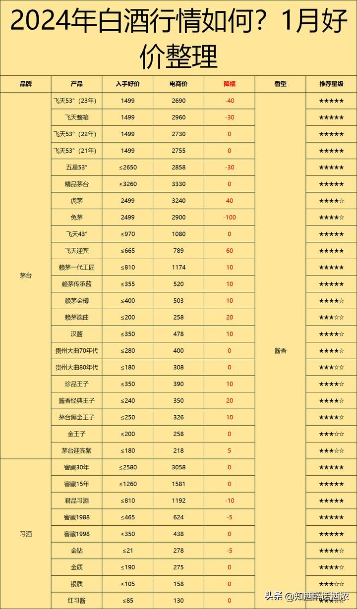 白酒全线下跌:什么时候能入手买酒?2024买酒建议与价格表分享!
