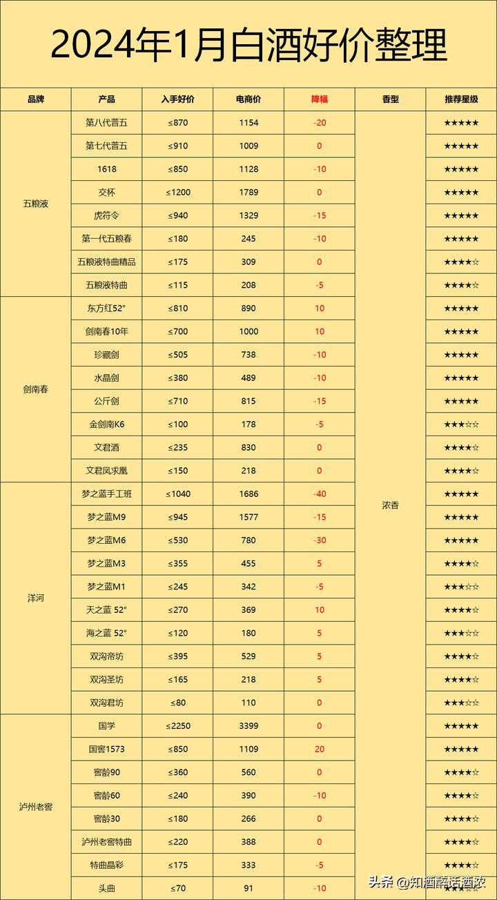 离春节不远了,年货节也开始预热了,部分酒刚需酒的价格开始回暖,但大多数酒还是处于下跌状态。过年用酒旺季,不着急的可以多等等,遇到满意价格的,可以考虑入手,不用非要等最低价,纠结几块,十几块的意义不大。