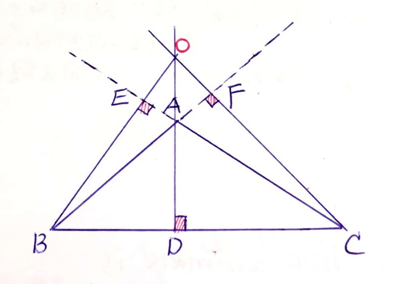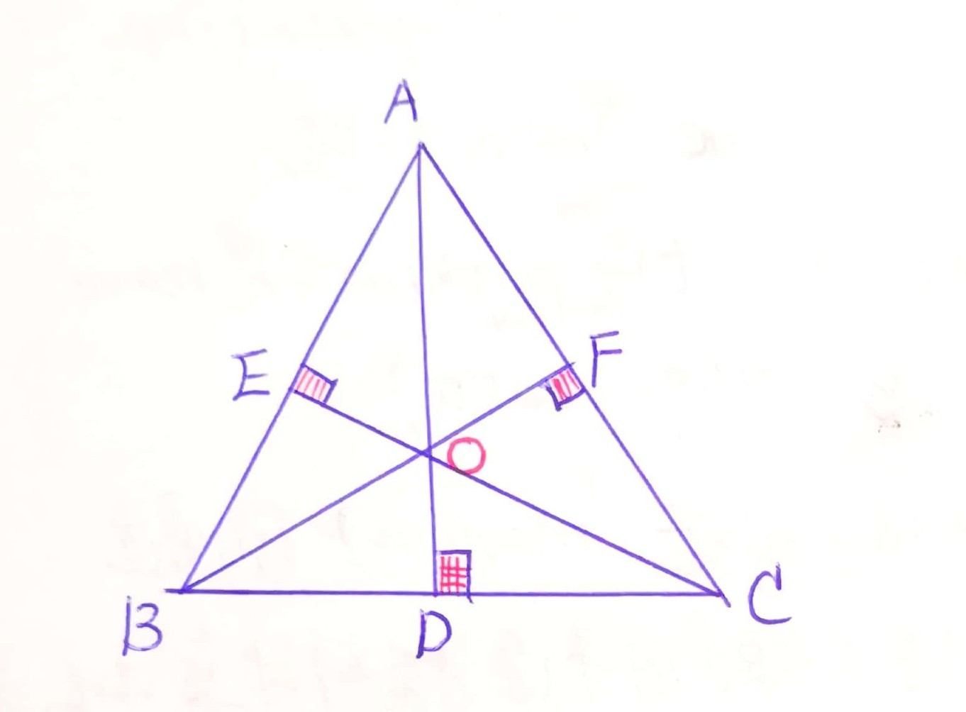 [性质3] 外心到三顶点的距离相等,即OA=OB=OC。