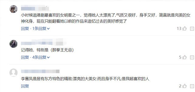 李赛凤还演过《济公》《仙女多情》,也曾搭档成龙演过《威龙猛探》,演过金庸武侠剧《越女剑》,还曾拜师徐小明,学习北派功夫。