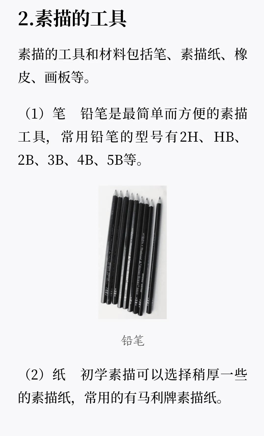 素描绘画中常用的笔有三种:铅笔、炭笔和纸笔,本节将带领大家认识和了解这些画笔的特点及使用技巧。