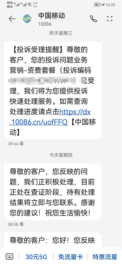 在工信部官网投诉(需要在中国移动投诉一次,解决不成功才能到工信部申诉)