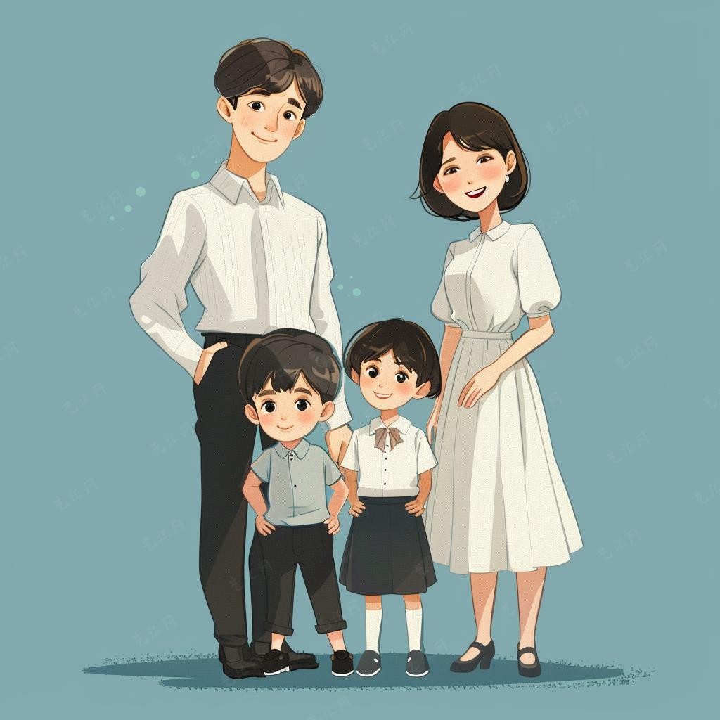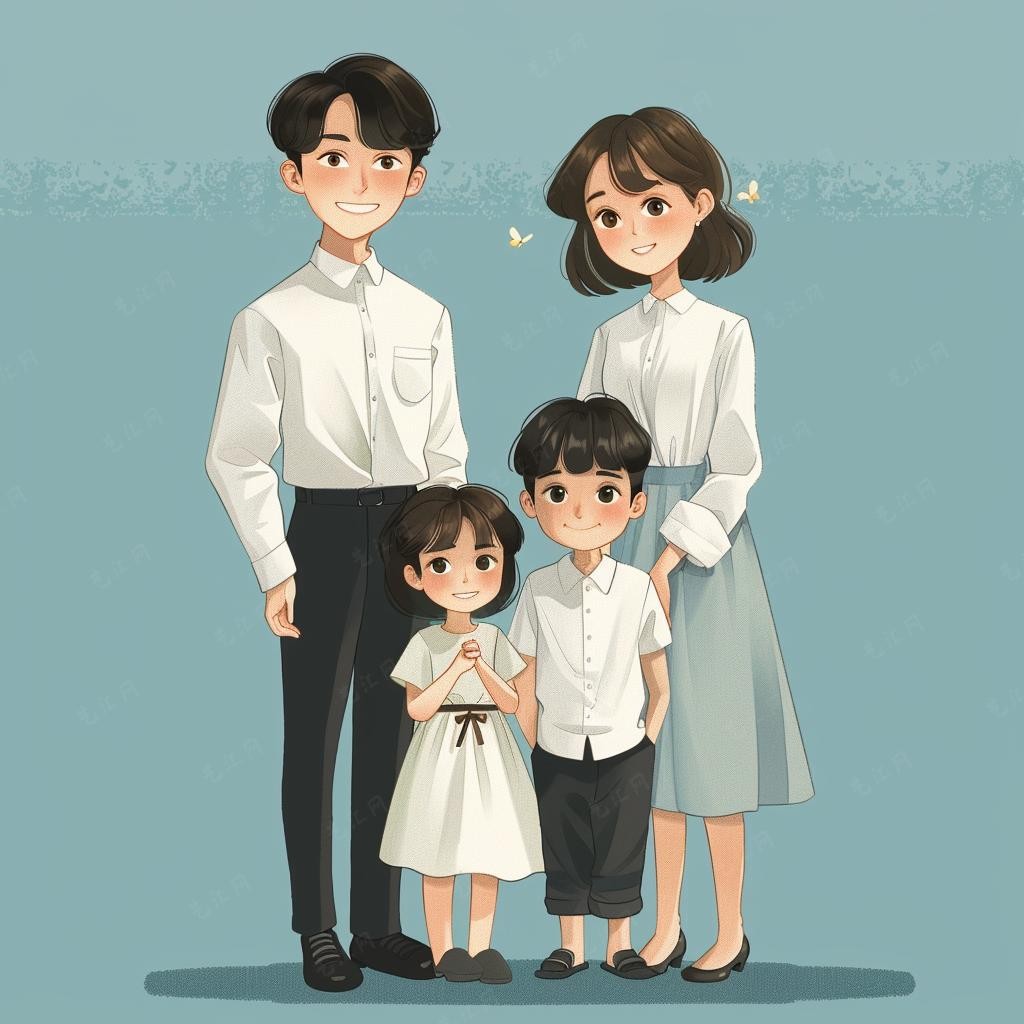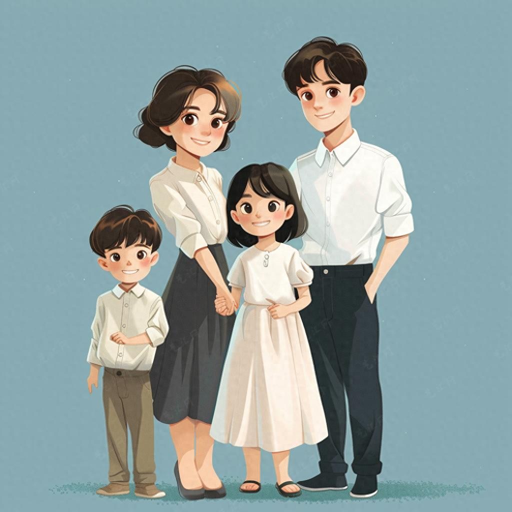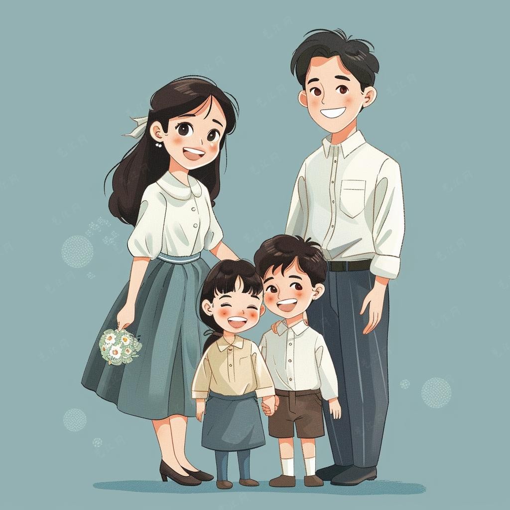 色彩柔和,线条流畅,人物形象生动可爱,让人一看就能感受到满满的家庭温暖。无论是爸爸的稳重、妈妈的温柔,还是孩子们的活泼可爱,都展现得淋漓尽致。