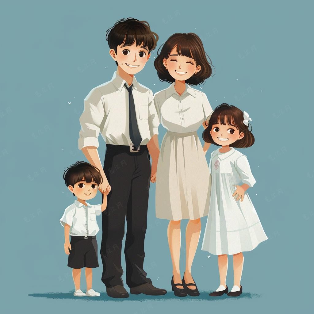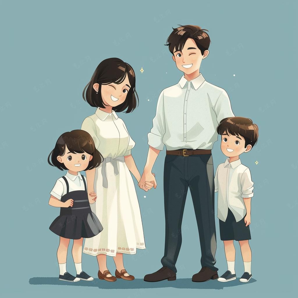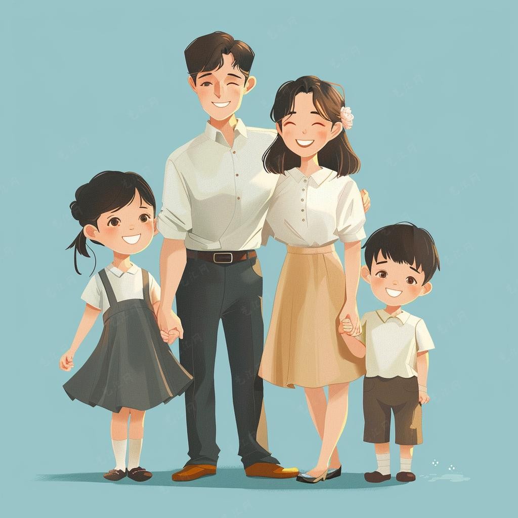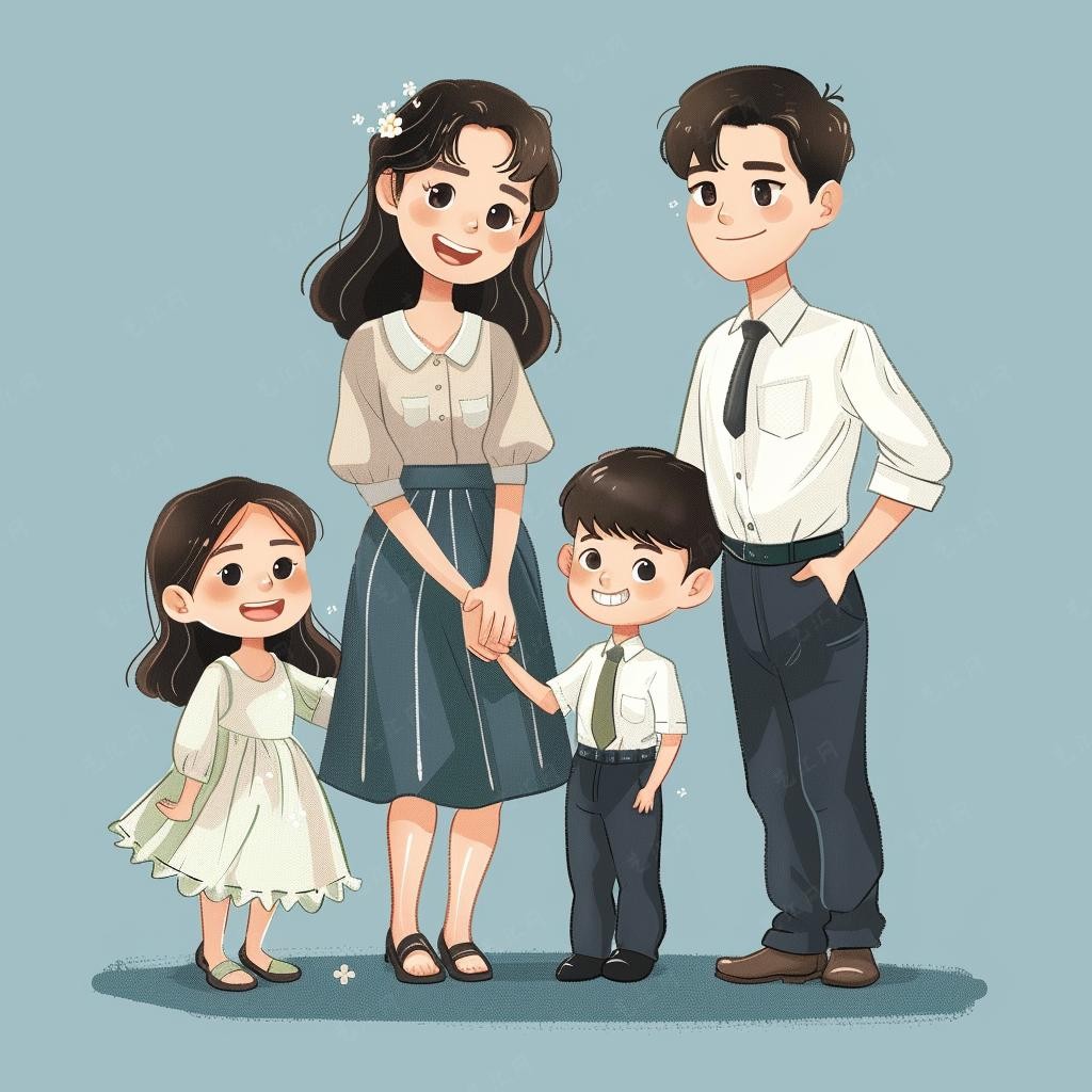 色彩柔和,线条流畅,人物形象生动可爱,让人一看就能感受到满满的家庭温暖。无论是爸爸的稳重、妈妈的温柔,还是孩子们的活泼可爱,都展现得淋漓尽致。