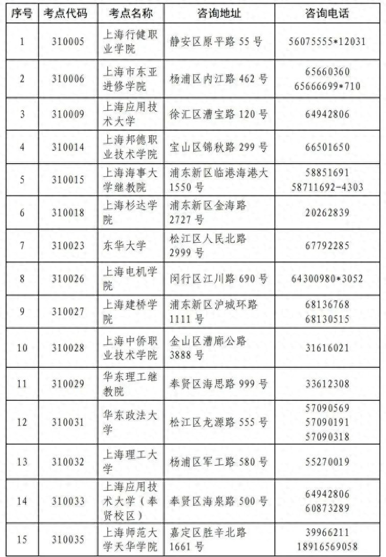2023年9月全国计算机等级考试考点信息一览表