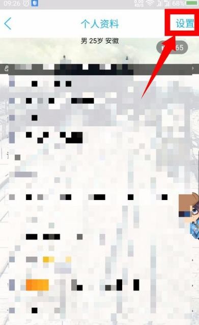 然后打开的就是好友个人资料界面,再点击右上角的设置。如图所示