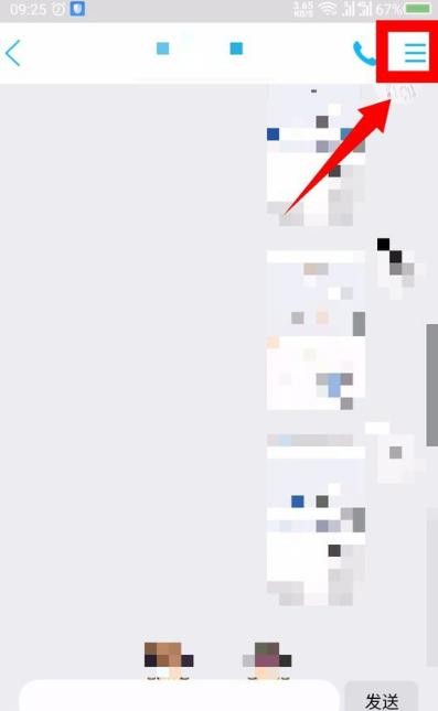 在和好友的聊天窗口界面,点击右上角电话图标右边的三横。如图所示