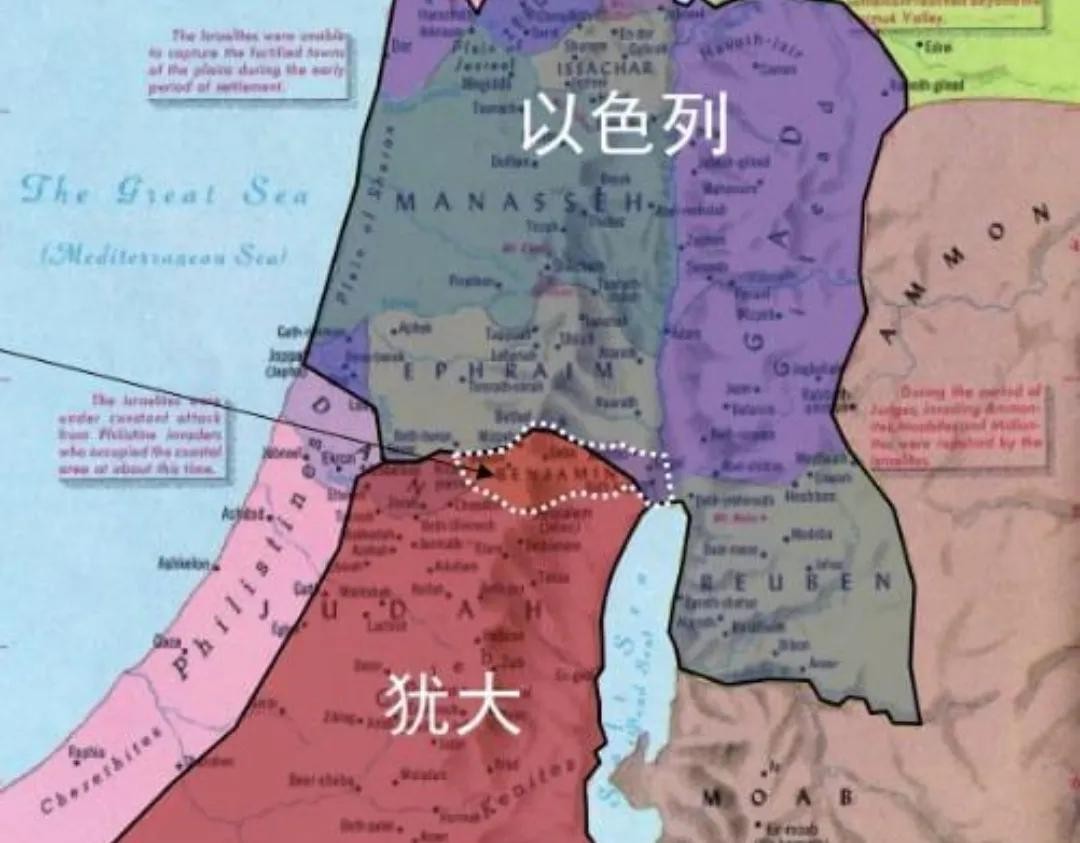 公元前13世纪,12支系部落组合成南部犹大部落,北部以色列部落。